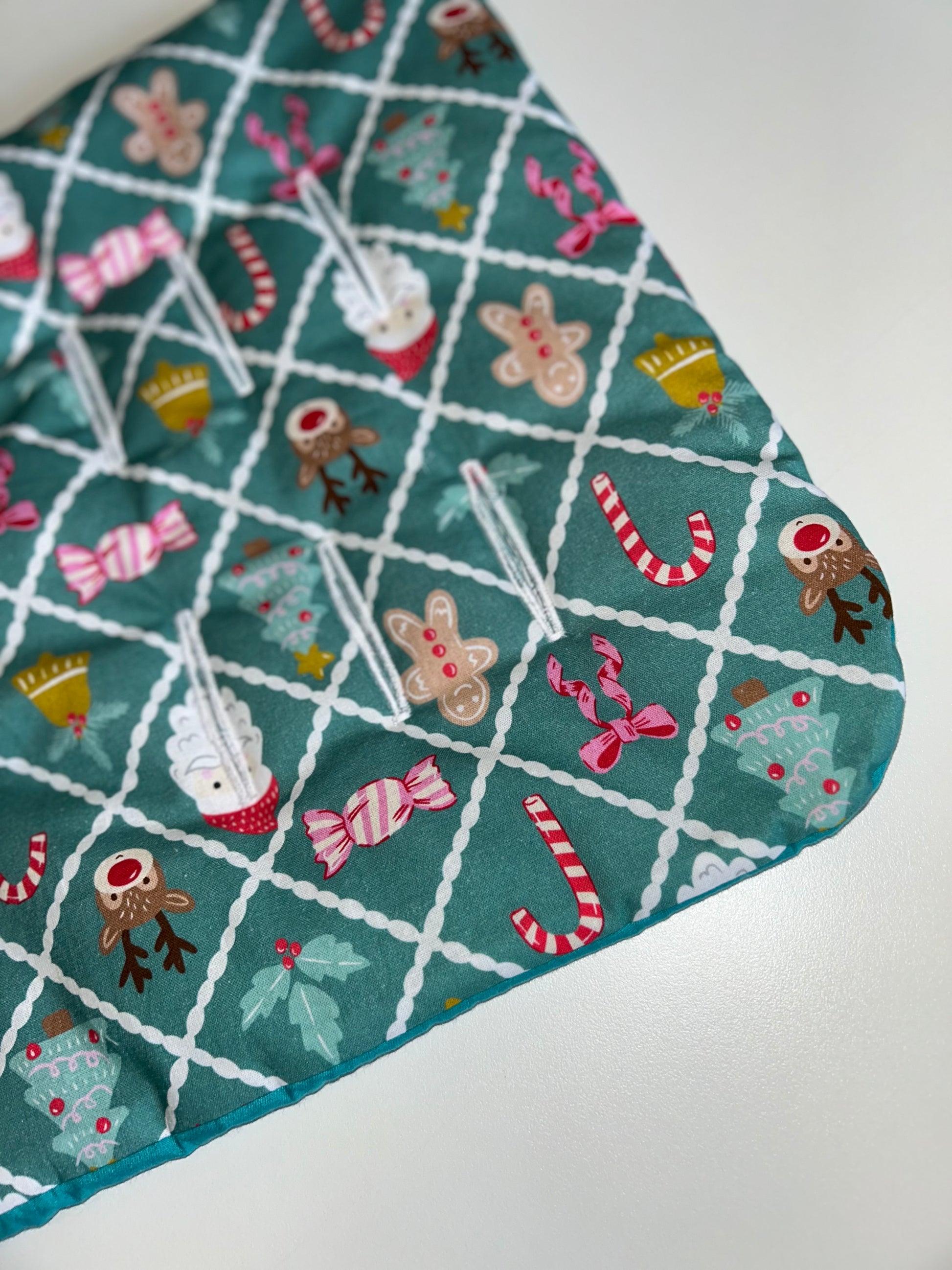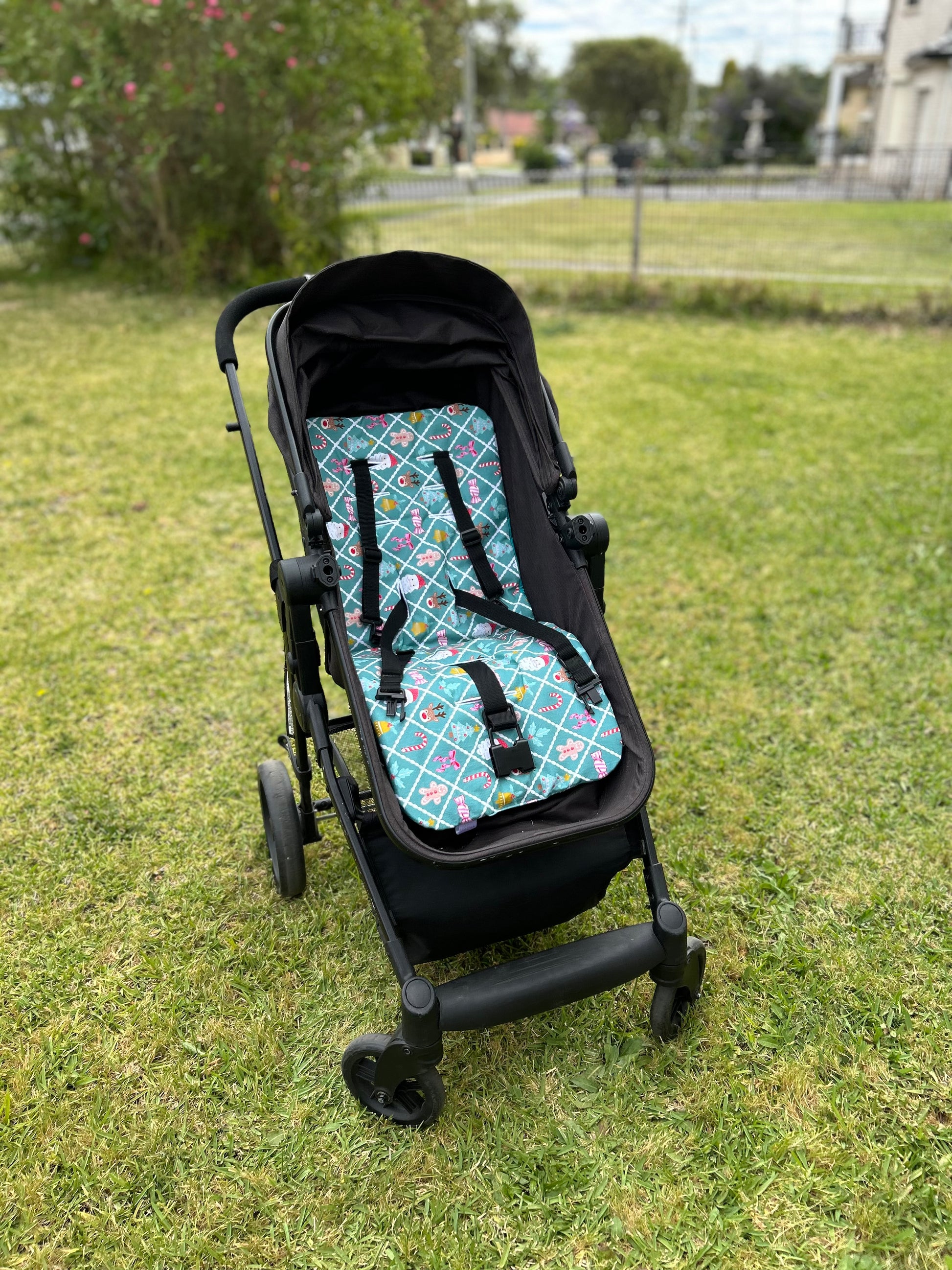Bring a gentle touch of festive elegance to your little girl’s pram with our Reversible Universal Miss Merry Teal Pram Liner. Inspired by the charm of the festive season, this design pairs a serene teal palette with elegant Christmas detailing for a timeless, feminine look.
