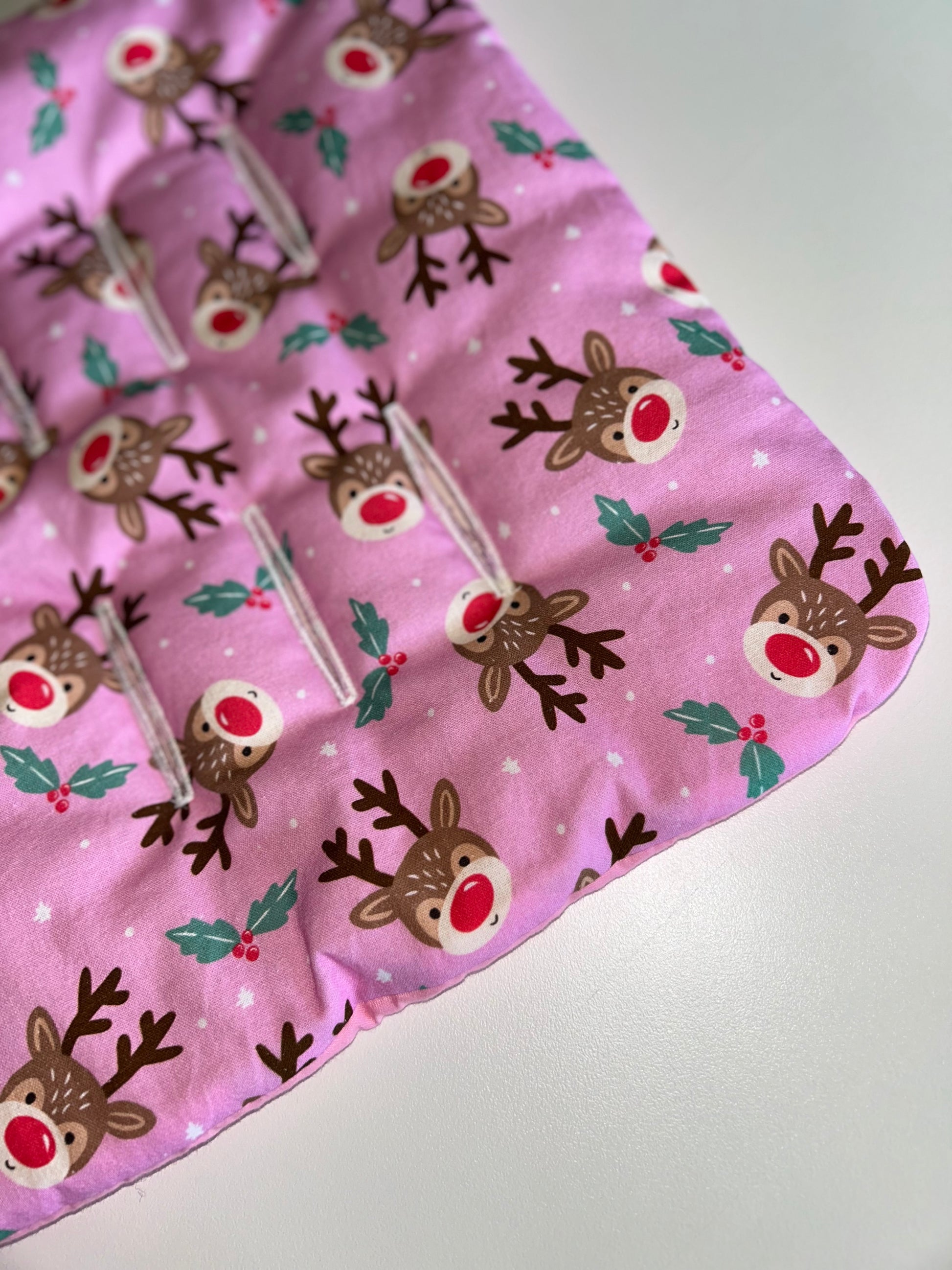 Perfect for Christmas outings, the Pink Prancer Pram Liner brings warmth, comfort, and a touch of magical holiday charm to every ride.